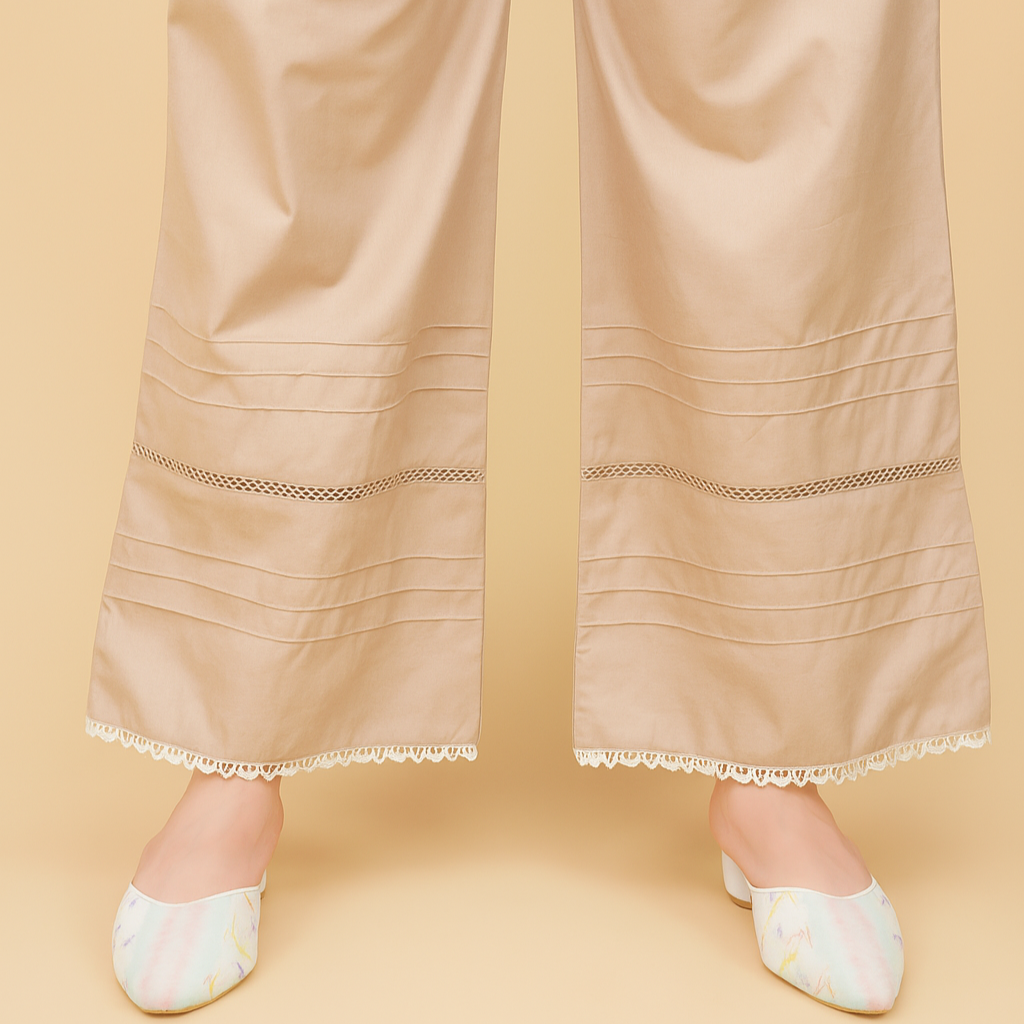 Step into effortless elegance with our Soft Cotton Pintex Palazzo – a perfect blend of comfort and contemporary style. Crafted from premium quality soft cotton, these palazzos are lightweight, breathable, and ideal for all-day wear. The fine Pintex detailing adds a touch of sophistication and structure, giving it a refined and tailored look.